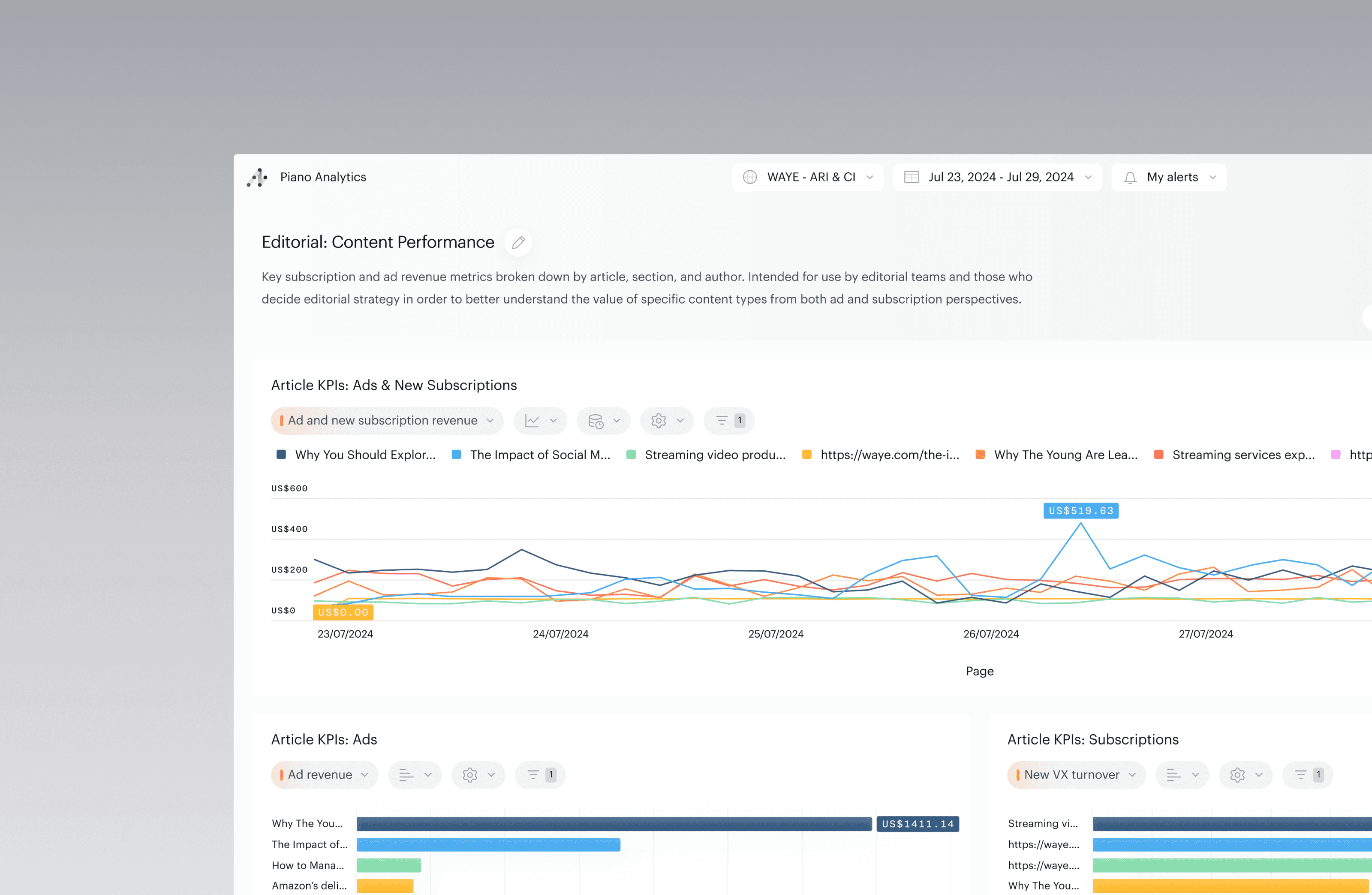 Understand which articles, authors, and topics are generating the most ad revenue to inform promotion and content creation.