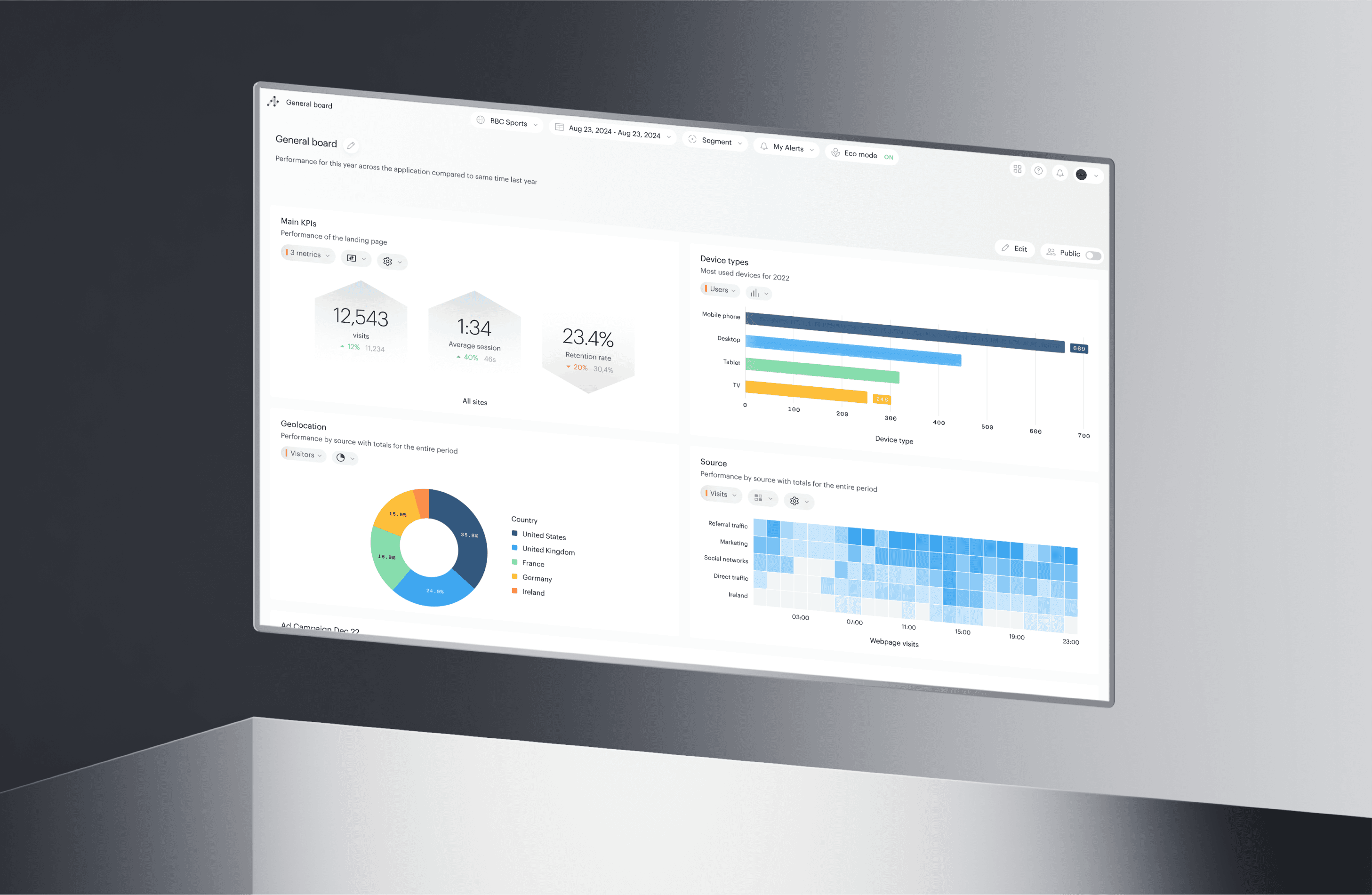 Throughout our reporting, Piano’s proprietary Eco Mode can reduce the carbon footprint of queries by more than 50%. Coupled with our clients’ data minimization strategies, Piano Analytics has the lightest possible environmental impact.