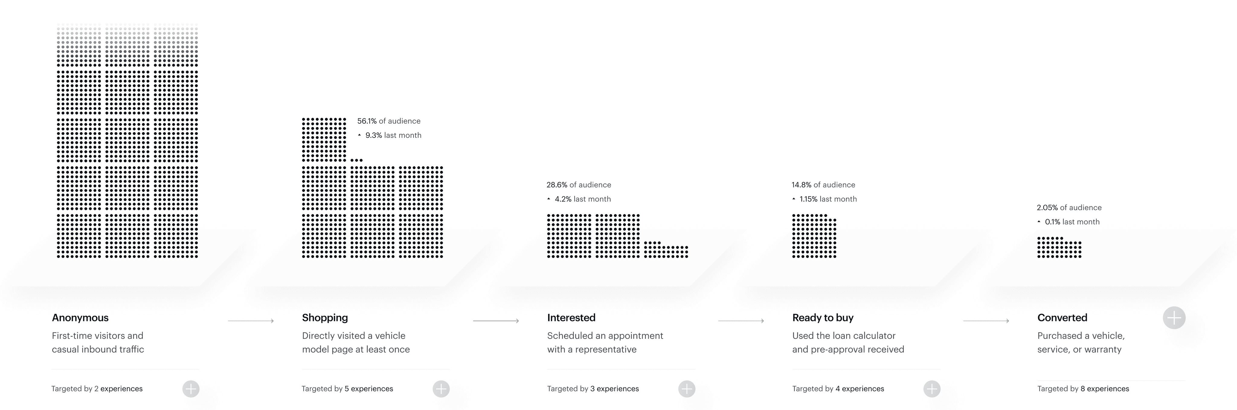 Analyze the historical flow of your audience as they move through each step of your experiences.
