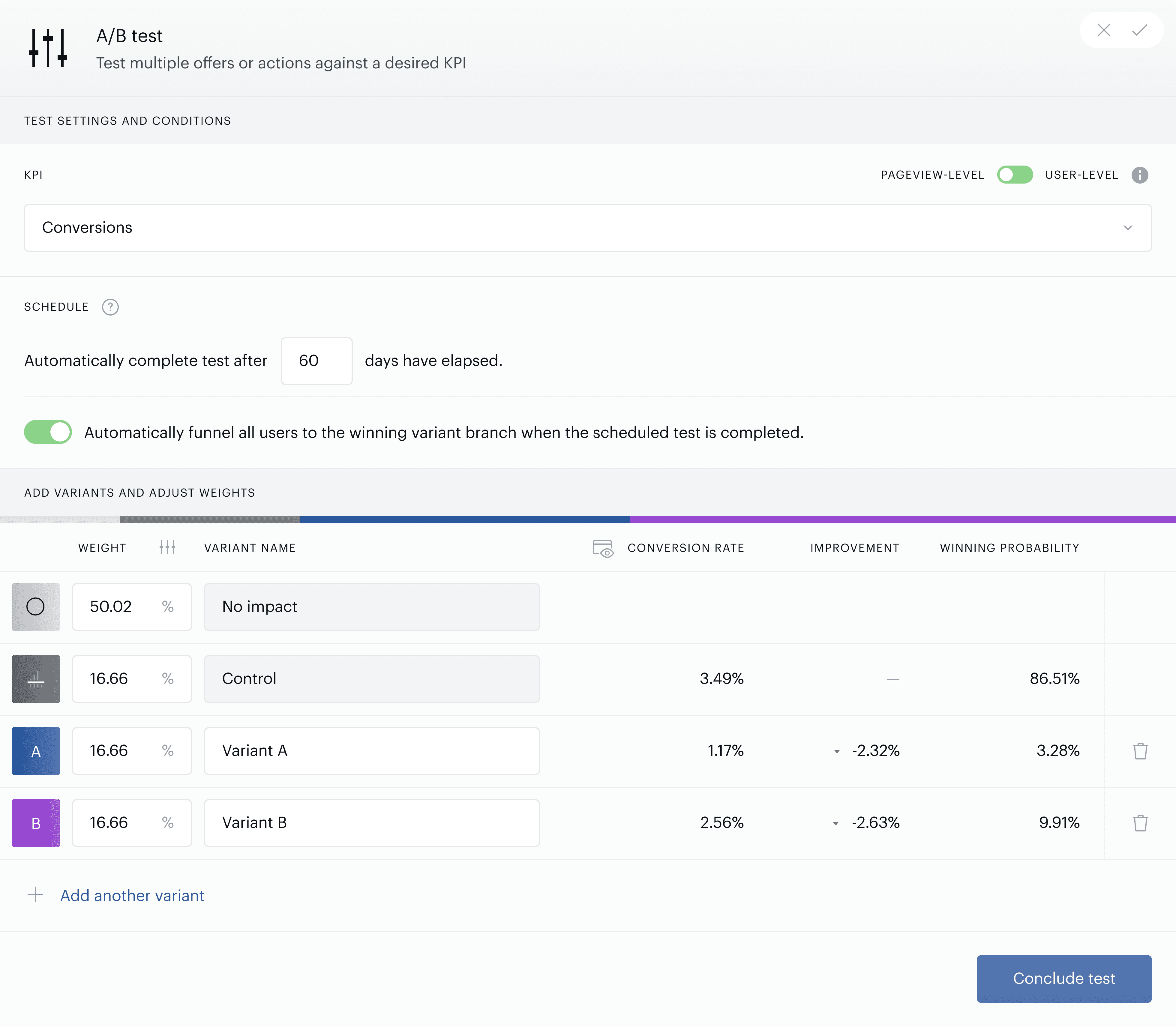 Deploy and monitor a variety of offerings and engagement triggers with powerful multi-variate split testing.