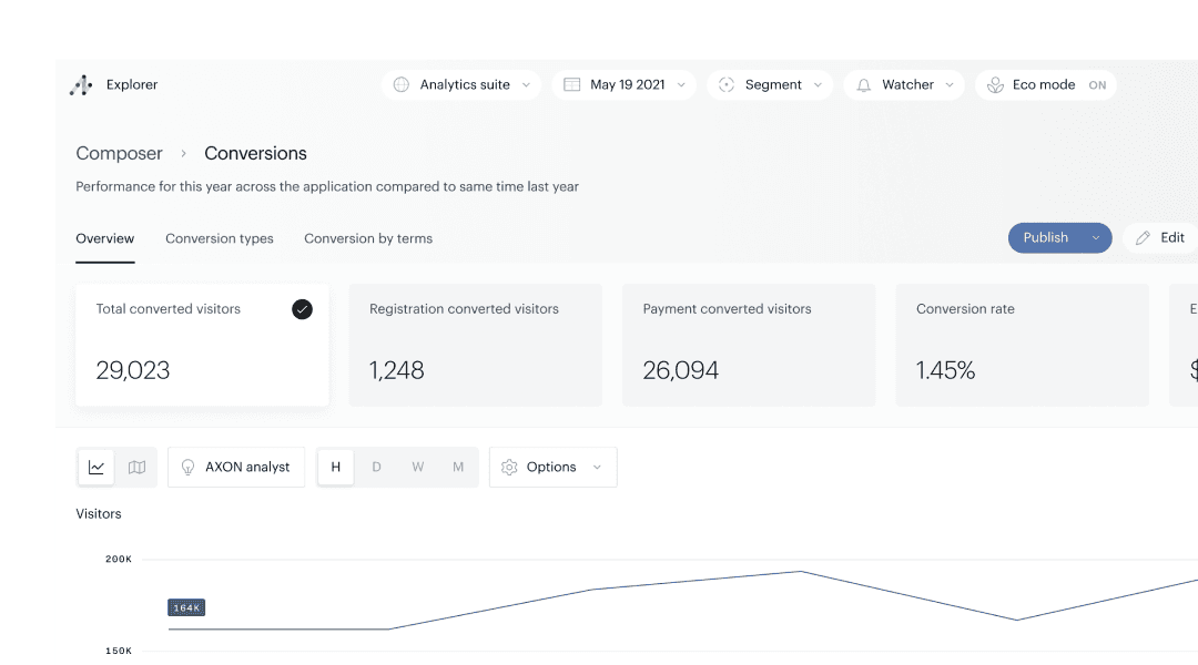 Composer works seamlessly with Piano Analytics, providing you a wealth of information — letting you calculate and visualize the value of every behavior, affiliate link click, ad impression, purchase, registration, and other actions.
